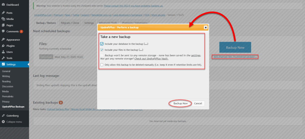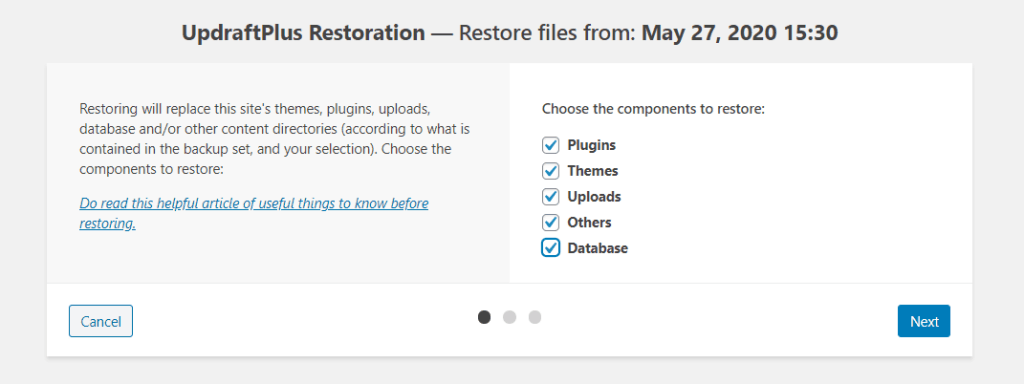 However, these are not the only cases when you can use UpdraftPlus. For instance, if your plugins aren’t behaving correctly, you can use the backup only to restore your plugins. Similarly, you can also use the backup only to restore your database and not the other data.