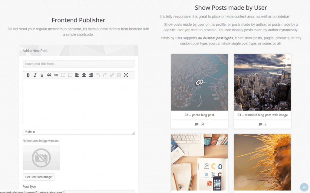 With the plugin, you can enable your visitors to create user profiles in the front-end using registration forms. The sleek login forms and member directories help deliver a rich experience to your users, and the user role editing features and content restriction features give you full control over your website.