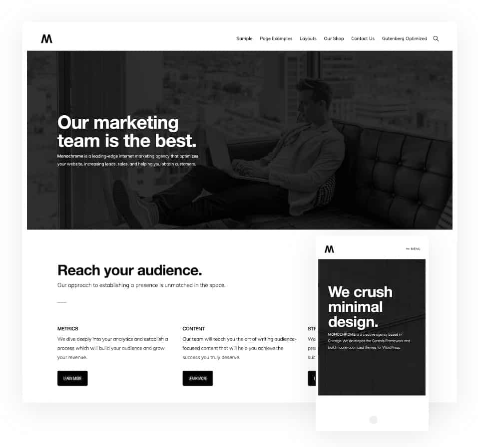 Genesis boasts optimized code and has a smart design architecture, which makes it possible to achieve the best rankings on SERPs.
