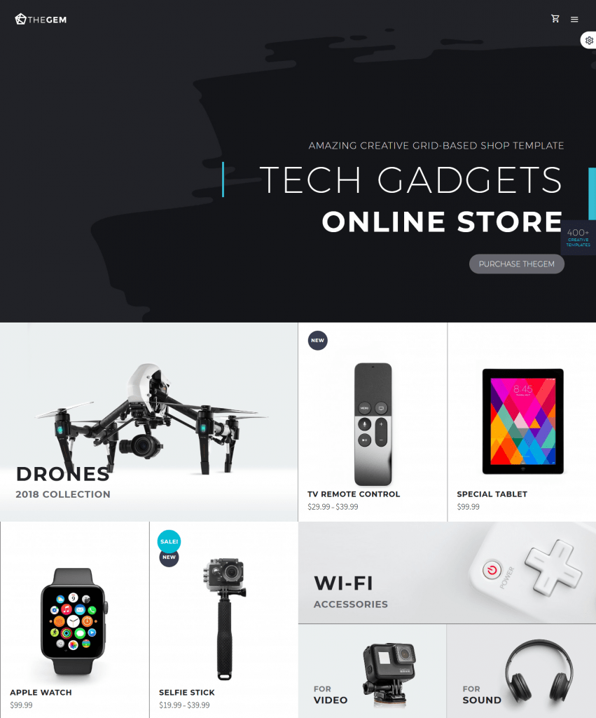 Since TheGem supports WooCommerce right out of the box, you can add product overviews, product pages, carts, checkout pages, wishlists, and a lot more.